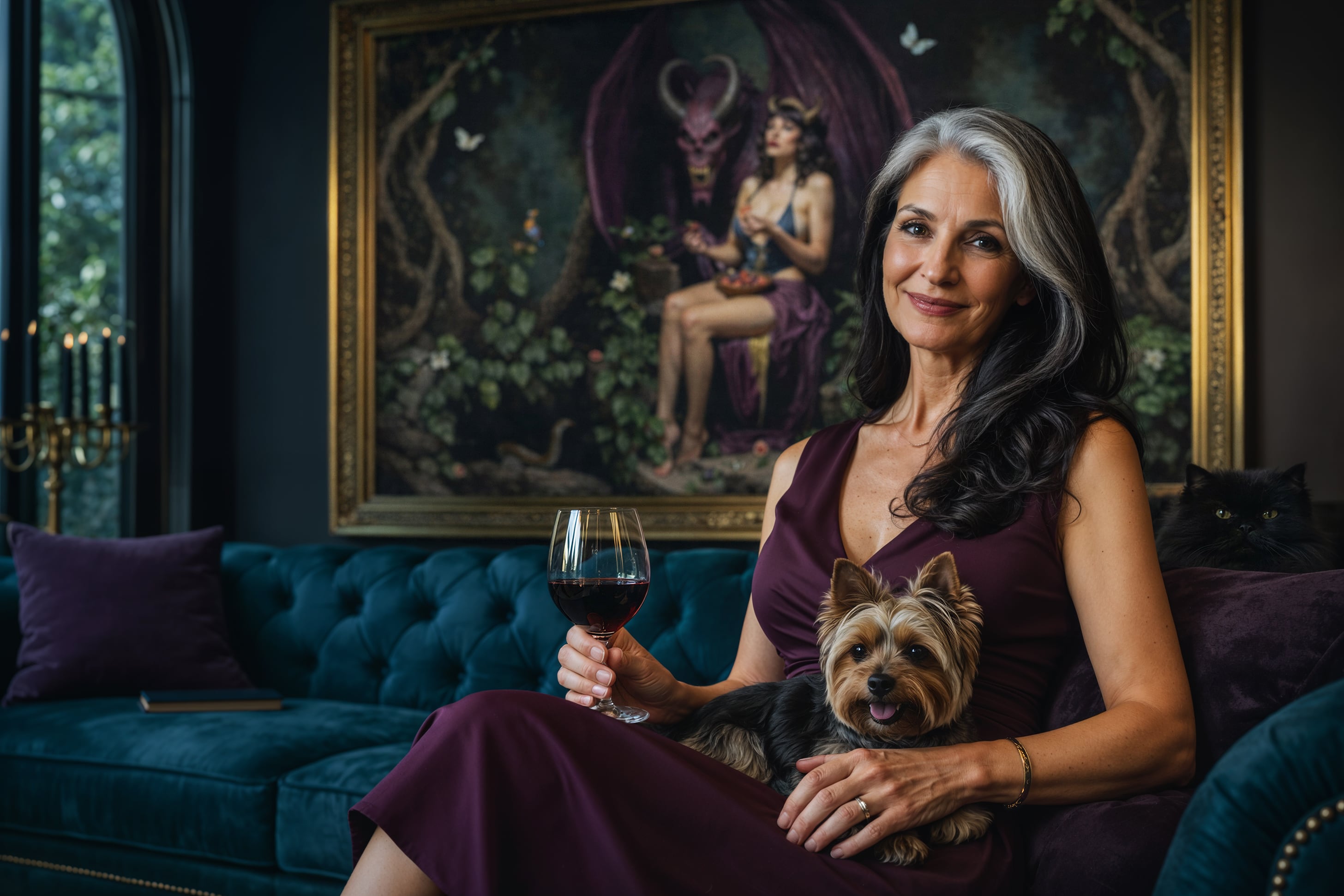 This series follows Persephone through the transformation that forges her into the Empress of Death. To claim her throne, she must release Adonis—the last love anchoring her to the living world—and descend into the Underworld’s sacred waters. Each piece captures a moment in her passage from grief to sovereignty, from the shattering of innocence to the awakening of a divinity born of shadow and sorrow. This is the story of a goddess discovering that some thrones can only be taken through sacrifice, and some power awakens only in the ruins of who we once were.